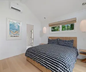 A stylish reimagining of our ever-popular Coconut Hut. This perfectly positioned gem sits in a secluded park-like paradise within a 5-minute walk to the idyllic Anini beach. With new construction, the house contains hardwood floors, whole house water filtration, AC in all rooms, portable Sonos speakers, and WiFi indoors and on the deck. The living spaces boast a large fold out flat screen TV, Wolfe range with indoor grill, LG washer/dryer, dishwasher, refrigerator, and freezer with ice maker. There is a Heston outdoor bbq for grilling.
