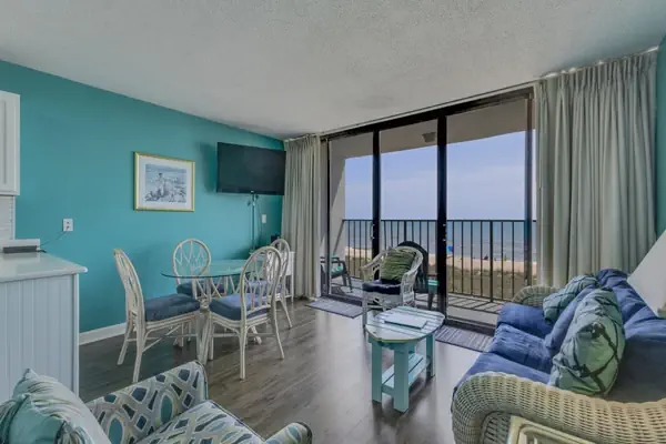 The living area is designed to be open and relaxing, allowing you to enjoy lounging, reading, or simply gazing out at the ocean. A full kitchen (with full‑size appliances, cookware and dishware) invites you to prepare breakfasts, beach snacks or a quiet dinner in when you choose. Large windows bring in natural light and the beach atmosphere, making it easy to stay connected to the shoreline even from inside.