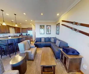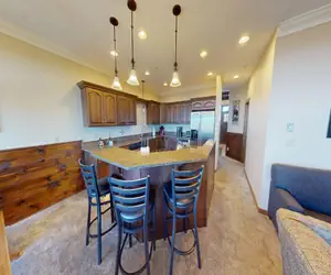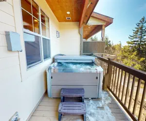 Black Bear Crossing 7 is a 5 bedroom/3.5 bath home located at Snowshoe Mountain Ski Resort in West Virginia. The spacious design and numerous rooms makes this two level home perfect for large gatherings. Enjoy sunsets over a stunning mountain view while enjoying the hot tub. Situated nearby the ski slopes, this short walk to slopes house is perfect for a winter getaway with family or friends. Black Bear Crossing 7 is a unique lock off rental home. The main level and upper level are separated from the lower level by a lock off door. Only the main and upper floors are available for rental as a 5 bedroom home that sleeps up to 15 people.