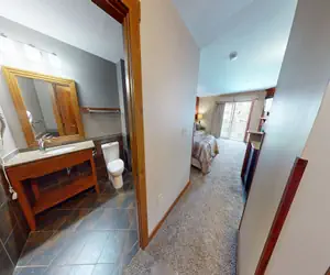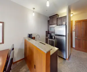 Renovated with a modern interior, this studio unit has a kitchen open to the living area and finished with granite countertops, stainless appliances and high quality cabinetry. The bathroom is finished with a granite vanity top, glass shower door, and heated tile floors. Other notable features include a flat screen television, gas burning fireplace, and luxurious linens. This unit has a Courtyard view of the Pool and short distance to Slopes. From the Allegheny Springs Ski Locker Room, the trail system is adjacent to the property."