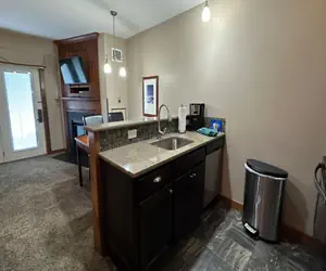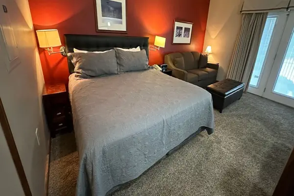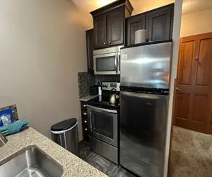 Refresh from a tough day on the slopes or bike trails by collapsing in the new King Size bed, and a fully renovated bathroom with heated floor to keep those toes warm on those cold winter nights. The ambiance of a gas fireplace is only a push button away and if you need the extra room, the couch pulls out to a double bed. Work from your room with broadband access available via the wifi. AS107 has been recently renovated with a new kitchen (granite countertops and stainless steel appliances). Fridge includes an ice maker so you won’t need to cruise the halls to gather a bucket of ice. Great room, Great Location!