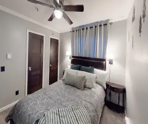• The Guest bedroom has a Queen bed and flat screen TV.