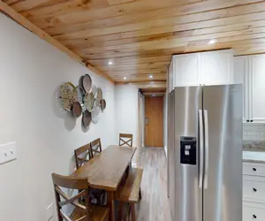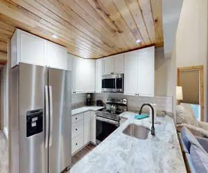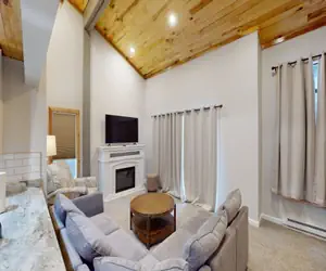 Modern 4 bedroom, tri-level condo that sleeps up to 8 people with 4 Queen beds and 3 full bathrooms. The main level features a spacious living area that opens to a deck, a beautiful kitchen with granite counter tops and stainless steel appliances, a dining area, one bedroom, and one bathroom. The upstairs level features an additional living area, two bedrooms, 1 bathroom and a small porch. The lower level offers a bathroom and bedroom that opens to a covered deck. Located on the ski slopes and bike trails, and just a short walk to the Village, this condo is perfect for a group of family or friends looking for a comfortable home base in between their mountain adventures. This unit also has air conditioning.