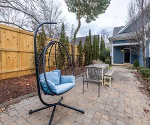 As you step into our charming home, you'll be greeted by a stylish and welcoming interior. The living space is thoughtfully designed for both relaxation and socializing, featuring ample seating and modern décor. Kick back and unwind after a day of exploring Raleigh on our plush sofas or enjoy some quality time together in the fenced backyard, perfect for those warm North Carolina evenings.