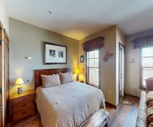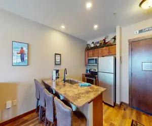 Experience the quintessential mountain getaway at our lodge, perfectly situated next to the Soaring Eagle Express Lift and the South Mountain area of the basin. Step into a spacious retreat with 9' + ceilings, full kitchens, gas fireplaces, balconies, and charming, sturdy furniture that exudes rustic charm. Indulge in the convenience of slope-side access, hot tubs, covered parking, and an on-site restaurant with concierge service.