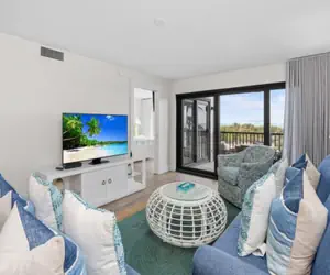 Fall asleep in the primary bedroom with the comfortable king bed while enjoying the sounds and views of the Gulf. Your guests will be very comfortable in the guest bedroom featuring two full beds, flat screen television, and ample storage. Additional sleeping option with the queen sleeper sofa.