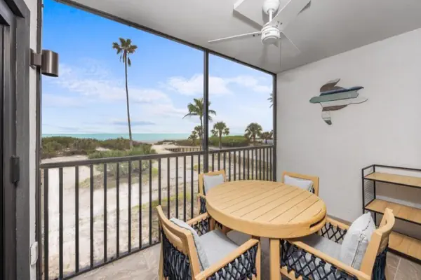 The time is now to book your ultimate vacation at Pelicans roost on Sanibel Island. This small complex has undergone a complete remodel with stunning finishes. Walk into the bright and spacious two-bedroom two-bathroom condo and immediately notice the stunning views of the Gulf of Mexico. The open kitchen with solid surface countertops, stainless steel appliances, and a breakfast bar. Luxury vinyl plank floor flows throughout this entire condo. Sliding glass doors open to the waterfront lanai where you can enjoy the views, breeze, and sounds of the Gulf of Mexico. The spacious guest room is perfect for family or friends. All new guest bathroom with shower/tub combination. The large primary has stunning views of the Gulf and an attached all-new bathroom with dual sinks and shower/tub combination.