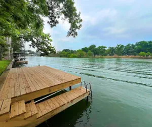 The lakes and rivers in the Texas Hill Country are not only some of the most beautiful sites in the world but also make summer vacations here unforgettable. The Guadalupe River is the place to be, and Twilight Point is the place to stay! Located on the Guadalupe River portion of Lake Dunlap, this beautiful home hosts up to 12 guests with 3 bedrooms and 2 full bathrooms with private water access. Enjoy a swim, play cornhole or relax by the fire pit. Sit on the back deck and grill on the Weber propane grill with ample seating. Parking Space for 3 vehicles.