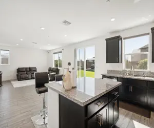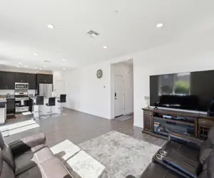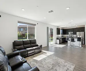 Step into a bright and airy living space that invites you to unwind. The cozy seating arrangement is perfect for family gatherings or movie nights, with ample natural light streaming through large windows.