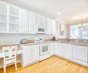 The living room features a sectional sofa and chair so comfortable you'll find it hard to leave! Enjoy your favorite movies on the Smart TV or nestle down on the couch with a good book. Adjoining the kitchen is a lovely dining room with seating for seven. The marvelous kitchen is complete with everything needed to prepare a gourmet meal and dine in. Right off the kitchen is a lovely screened-in porch with a table and seating for four.