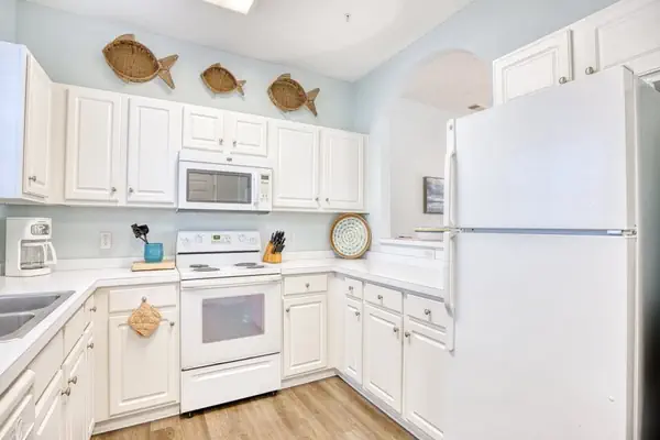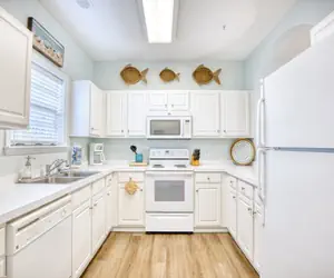 Welcome to our two-bedroom, ground-floor golf villa in the exquisite Ironwood community at Barefoot Resort. The spacious great room, adorned with delightful colors and tasteful accessories, offers ample seating for all guests. The kitchen is overstocked with an amazing assortment of exciting cookware and unique serving dishes. The cook won’t miss out on any of the fun since there is a large archway opening to the dining room and living room. Enjoy dining in the lovely dining room with a full-size table with seating for six or on the porch. Entertainment is provided with a large screen TV. Stay connected with our complimentary Wi-Fi—bring your laptop along!