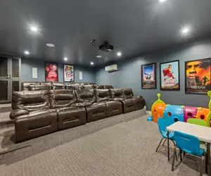Welcome to the Great Escape—a serene retreat where every bedroom has its own bathroom. With five king suites, one queen suite, and a spacious bunk room, everyone can relax in comfort! Challenge friends to ping pong, foosball, and basketball shoot-out, or enjoy a movie in your private home movie theater. Afterward, step outside to soak in the hot tub under the stars.