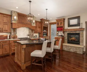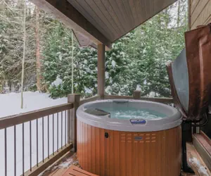 Venture up to the kitchen level, where gourmet touches abound. A six-burner range and a spacious breakfast bar with seating for three complement the elegant dining area, which comfortably seats eight. Open the doors to your private deck, where a gas grill, hot tub, and outdoor fireplace invite you to enjoy alfresco dining or starlit soaks surrounded by nature's beauty.