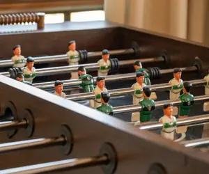 As you head back up to the main living area, the true heart of the home reveals itself—a grand living room with oversized sectional seating, a cozy nook for two, a foosball table, and a second smart TV. Perfect for gathering in the fresh mountain air after a day, this space invites you to unwind by the fire or catch up on your favorite shows.