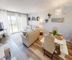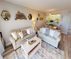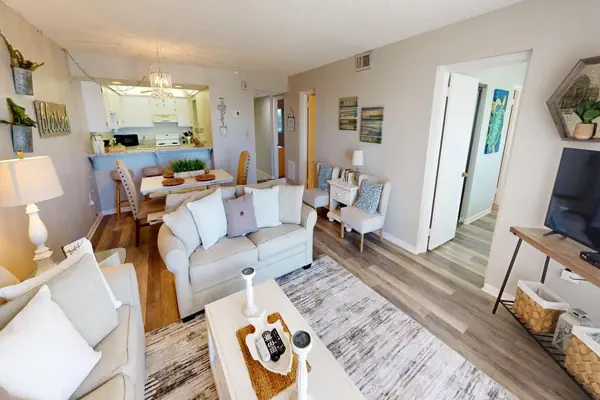 The master bedroom boasts a king-size bed, while the guest bedroom features 1 Queen sized bed, the living room feature a sofa sleeper, accommodating a total of six guests. The guest and master bathroom offer a combination tub/ shower. Equipped with a washer/dryer for your convenience, this charming condo invites relaxation.