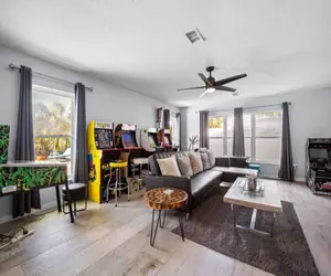 Kids and adults alike will love the game room, complete with eight video arcade machines including PACMAN, Galaga, Frogger, Golden Tee Golf, NBA Jam, and Star Wars, as well as a sectional and 90” smart TV!
