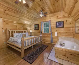 Smokies Bungalow is located in Gatlinburg, not far off of the main parkway. The cabin sits about 30 minutes from Dollywood and Splash Country, where you can take advantage of the free tickets you receive with every stay!