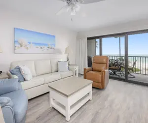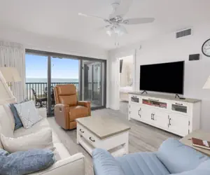 Fall asleep in the primary bedroom with the comfortable king bed while enjoying the sounds and views of the Gulf. Your guests will be very comfortable in the guest bedroom featuring two full beds, flat screen television, and ample storage. Additional sleeping option with sleeper sofa.
