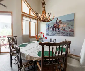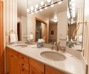 This condo features a large living room , wood fireplace, five bathrooms, deck area with a gas grill, and a master suite with a king size bed. The second room has two full beds, third room has two full size beds, the fourth has one full and a twin. There are two additional twin beds in the loft. Also equipped with a full kitchen and in unit washer and dryer. There is an assigned ski locker on the ski access level, free wifi, great views of slopes and Village.