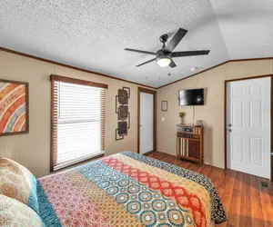 For the Free-spirited, welcome to our “Bohemian Rhapsody” retreat for 2 guests.You'll love this peaceful and laid-back Boho inspired space. It offers a comfy queen bed and private bath.We are just 2 miles from beautiful Lake Texoma, known as the striper capital of the world. Guests may want to hire a fishing guide, book a fishing charter or rent a boat. The sandy islands are a short boat ride from Buncombe Creek Marina or you may want to enjoy the private stocked pond just steps from the covered porch.This space has a mini fridge, microwave and Keurig. Some coffee pods, sugar and creamer are available.Outside amenities also include a charcoal grill (charcoal not included), picnic tables and a fire pit.The spaceFor the Free-spirited, welcome to our “Bohemian Rhapsody” retreat for 2 guests. You'll love this peaceful and laid-back Boho inspired space. It offers a comfy queen bed and private bath. We are just 2 miles from beautiful Lake Texoma, known as the striper capital of the world. Guests may want to hire a fishing guide, book a fishing charter or rent a boat. The sandy islands are a short boat ride from Buncombe Creek Marina. Or you may want to enjoy the private stocked pond just steps from the covered porch.This space has a mini fridge, microwave and Keurig. Some coffee pods, sugar and creamer are available. Outside amenities also include a charcoal grill (charcoal not included), picnic tables and a fire pit. The outside spaces are shared with units A & B. Optional adjoining door with Unit B. All 3 units can accommodate 10 people and can be rented together at a discount.Guest access24 Hour Gated Access with code.During your staySelf check-in with lockbox. Code will be sent to you at the time of reservation, only after receipt of a signed liability waiver.Other things to noteKeep in mind folks, we are out in the natural landscape of nature. There are all kinds of critters that roam our property day and night. If you have allergies to wasps, bees, hornets, etc., please come prepared. There are ducks, geese, racoons, deer, and yes, and occasional snakes.