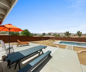 Step outside to your private oasis, where you can unwind by the pool or soak in the views of Joshua Trees from the patio. The surroundings provide a peaceful retreat, while still being conveniently close to local attractions and activities. Explore nearby hiking trails, visit local markets, or take a short drive to great local restaurants and shops. After a fun day of exploring in the desert, come back to unwind and enjoy the beautiful starry skies. Bonanza in the Desert offers the perfect balance of calm, style, and adventure, ensuring a memorable stay.
