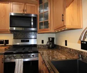 Kitchen features sleek granite countertops and brand-new appliances, perfect for preparing meals and spending quality time together.