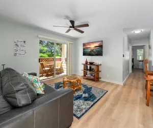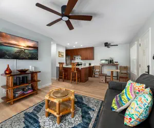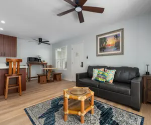 Island-Style Kitchen: The fully equipped kitchen is a chef's delight, featuring stainless steel appliances, granite countertops, and everything you need to prepare delicious island-inspired meals. Enjoy your culinary creations in the cozy dining area, which seats four comfortably, or dine al fresco on the lanai as you savor the warm Hawaiian breeze.