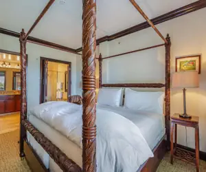 The suite also includes vaulted ceilings in the living room, climate control, resort WiFi, and a 50-inch LED HDTV for your entertainment. Just a short stroll away, you'll find a sandy beach and a unique heated pool that spans over two acres, complete with waterfalls, romantic grottos, and water slides. We provide you with beach chairs, an umbrella, and a cooler.