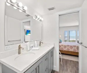 Fall asleep in the primary bedroom with the comfortable king bed while enjoying the sounds and views of the Gulf. Your guests will be very comfortable in the guest bedroom featuring two full beds, flat screen television, and ample storage. Additional sleeping option with the queen sleeper sofa.