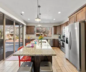 With space to sleep 11 across 3 bedrooms and 3 bathrooms, this cozy, family-friendly rental is thoughtfully equipped to make your stay effortless and enjoyable. The fully stocked kitchen is perfect for preparing meals, while the private outdoor patio invites you to relax with comfortable seating and fresh desert air. Kids will love the Xbox and the private splash pad (available mid-February through October), and grown-ups can unwind with a good movie on one of the Smart TVs.