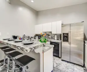 Experience the perfect blend of history, charm, and modern luxury in this stunning suite within a historic mini-mansion. Featuring exquisite hand-carved oak paneling, this elegant retreat offers old-world allure complemented by modern amenities. Unwind in the serene Shangri-La courtyard garden, relax on the private deck, or explore the vibrant neighborhood with its abundance of restaurants, theaters, nightlife, and proximity to iconic DC attractions.
