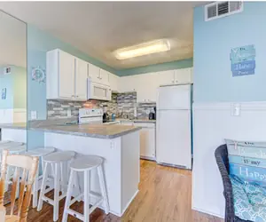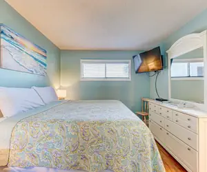 Just a short stroll from the shoreline, this ocean‑front 1 bedroom, 1 bathroom condo on the 2nd floor provides a warm and welcoming retreat for up to five guests. The master bedroom features a luxurious king size bed for restful nights beneath the sound of the surf. Conveniently tucked into a hallway alcove is a built‑in twin bed—ideal for a child or extra guest—while the living room includes a sleeper sofa, offering flexible sleeping space without sacrificing living comfort.