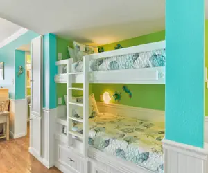 Outside in the hallway is a comfortable alcove with a twin bunk bed.