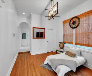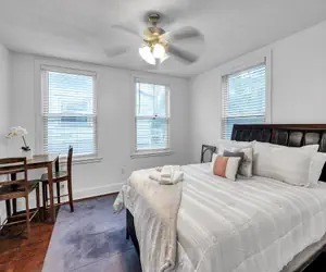 Discover the perfect blend of convenience and tranquility at the C.A.L.M. – Cottage at the Last Mile. Nestled at the end of a peaceful, tree-lined street, this charming 1930s cottage offers the ultimate Savannah retreat, just minutes away from the vibrant heart of downtown.