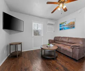 Come stay at this modern 2 bedroom suite, located close to Table Rock Lake and Silver Dollar City. It is situated in a cozy little resort just minutes away from all that Branson has to offer. You will walk in to the living area featuring a comfortable couch with pull out bed, and streaming only flat screen tv. This unit features a large window letting in lots of natural light, and looking out at the outdoor pool.