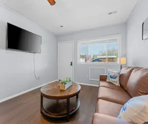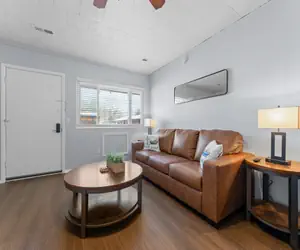 Come stay at this modern 2 bedroom suite, located close to Table Rock Lake and Silver Dollar City. It is situated in a cozy little resort just minutes away from all that Branson has to offer. You will walk in to the living area featuring a comfortable couch with pull out bed, and streaming only flat screen tv. This unit features a large window letting in lots of natural light.