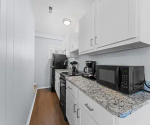 The galley kitchen offers a great place to cook homemade meals before heading out for your day of adventures, or in the evening to have a filling meal to finish the day. Dining area features cozy dining table with seating for 4.