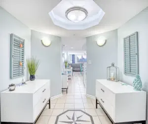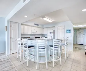 There are three luxurious bedrooms. The master bedroom features a king-size bed, a sprawling balcony with an incredible view, a master bath, and a flat-screen TV. The second bedroom has two cozy queen beds, a private bathroom, plenty of closet space, and a flat-screen TV. The third bedroom features a queen-size bed and also has a flat-screen TV.