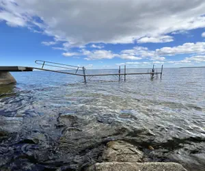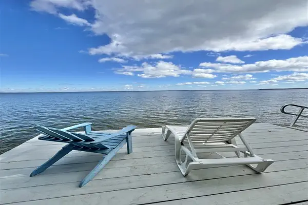 Waterfront/Lot Description: Level, private shorefront lot with beautiful expansive lake views. Rocky frontage. Bottom is a mix of sand and rocks. Good swimming. Ladder off dock in to water. Dock/Suitable for tie-up: yes, loading and unloading. Mooring: yes.