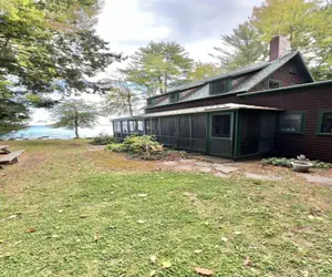 OCCUPANCY LIMIT 17 Take a step back in time at this turn of the century lakeside cottage. Loads of charm from the fieldstone fireplace in the livingroom to the big wraparound porch overlooking the lake. Plenty of room for the whole family and then some - with 6 bedrooms plus a bunk house with 4 twin beds and a half bath. Wonderful, private lot with big lawn on lake side. Nice L shaped dock plus a mooring. Sandy bottom swimming. DOG CONSIDERED WITH $125 FEE