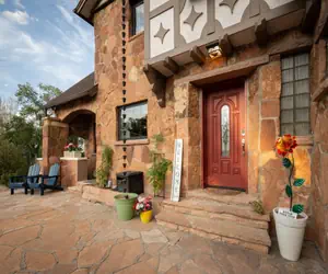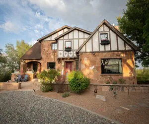 This enchanting 1945 Tudor home, along with its guest house, offers a harmonious mix of contemporary amenities and old-world allure. Ideal for several families and particularly welcoming for children, it boasts a "kid barn," a treehouse, a heated pool operational from April through October, and a hot tub available throughout the year. Conveniently located within biking distance to the Lunch Loops Trailhead for mountain biking and hiking adventures, it's also just a short drive from downtown retail and dining, the majestic Colorado National Monument, golf courses, wine tasting excursions, river rafting, and the slopes of Powderhorn for downhill skiing.