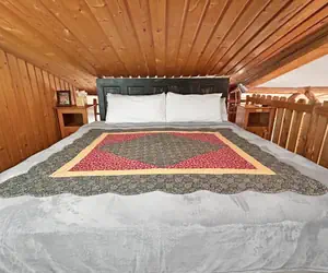 As you enter, the log cabin design with take your breath away. The open room concept will greet you with warm and relaxation. The fully stocked kitchen is to the left with a full refrigerator, stove, and microwave. Enjoy your mornings with a cup of coffee from the coffee bar. Next to the kitchen is a beautiful log staircase up to our master suite loft with king bed and large flat screen TV. Past the staircase, you can relax and visit in the cozy living room area, complete with a smart TV and comfortable couches that transform into a full-sized bed. To your left lies another love seat that pulls out to a twin bed. In the right corner, you are greeted with an oversized chair and ottoman, the perfect place to catch up on some reading. Nestled at the far end of the home is a wood burning stove to complete the full cabin experience. The laundry area boasts a stacking washer and dryer set, alongside a fully equipped bathroom. The home is completed with an oversized two car garage for vehicles and outdoor toys. Bringing your furry friends, you will love the doggie door that leads straight into an outside kennel.
