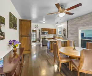 As you enter into this quaint cottage, you are welcomed by its cozy decor and spacious living space. Equipped with everything you will need for a comfy stay like a smart tv, comfortable sofa, full refrigerator, stove, dishwasher, and many kitchen utensils. The master bedroom has a spacious king bed and nomad workspace. This primary bedroom connects to a full bathroom with a beautiful stone walk-in shower. This bathroom also connects to the second bedroom which is equipped with a queen and an extra long twin bed with a walk-in closet. For convenience another half bathroom is found near the back entrance and laundry room. The laundry room is furnished with a stacked washer and dryer. The backyard is large, roomy and fully fenced. Perfect for families including their fur babies!
