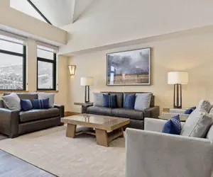 Located at the base of the renowned Steamboat Ski Area, the Steamboat Grand offers an unmatched level of service and sophistication in one of America’s most beloved year-round mountain destinations. Penthouse 704 is a sprawling two-story retreat, encompassing 3,935 square feet of refined luxury, ideal for groups or families of up to 14 guests.This magnificent penthouse boasts five well-appointed bedrooms and five bathrooms. Three of the bedrooms feature plush king-sized beds, while the fourth offers two full-sized beds. The fifth bedroom is perfect for younger guests with two sets of bunk beds. For additional flexibility, the living room includes a queen pull-out sofa sleeper.Every detail of Penthouse 704 reflects mountain elegance, from gas fireplaces and tumbled slate accents to granite countertops and vanities. The interiors are adorned with plush carpeting, a combination of slate and hardwood flooring, and tasteful mountain furnishings. Guests will appreciate the spacious galley kitchen, formal dining area, walk-in closets, and indulgent whirlpool tubs.Exclusive to this penthouse is a private sauna, perfect for unwinding after a day of adventure. With the convenience of an in-unit washer and dryer and the privacy of five bathrooms, Penthouse 704 ensures a seamless and luxurious stay.Experience the perfect blend of comfort and grandeur, complemented by the world-class amenities of the Steamboat Grand, for an unforgettable mountain getaway.The Steamboat Grand Pool and Hot Tubs will be closed for routine maintenance starting Sunday, April 27, 2025, and reopening on Monday, May 12, 2025.