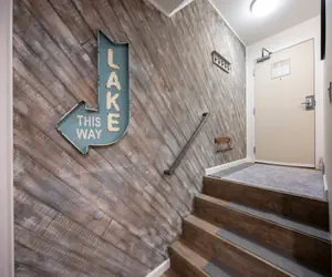Outside, you will find beach and lake access, ideal for swimming, fishing, or simply soaking in the sun. On-site amenities enhance your experience with access to a sauna, outdoor BBQs, picnic tables, and an on-site marina offering rentals for boating and other water sports during the summer.