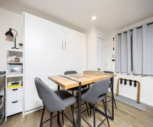 The studio boasts an array of amenities, including a fully equipped kitchen with a refrigerator, electric stove, microwave, and coffee maker, making meal preparation a breeze. Unwind in the living area featuring a 42" Smart TV with DirecTV service and an electric fireplace to add warmth during chilly evenings. For your convenience, essentials such as linens, towels, and a hairdryer are provided, ensuring a hassle-free stay.