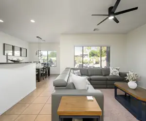 Casa Stetson is a private single family home all on one level with no stairs; located in a quiet neighborhood of north Phoenix, just off of highway 17. The great room offers a huge couch and TV (cable channels included) that opens up to the kitchen with breakfast bar and inside dining. You will also find a desk in the living room to send those necessary work emails. A sliding door leads you to outdoor dining overlooking the sparkling pool and hot tub. The pool can be heated for additional charge. The hot tub can be used at leisure at no cost. 4 chaise lounge chairs to get some AZ sun. Built in BBQ and outdoor bar to enjoy and cocktail while helping the cook.