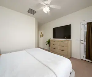 For bedrooms you will have 2 King bedrooms and 2 queen bedrooms. TV in the master bedroom. 2 car garage, parking available in driveway as well. Laundry room with full size washer/dryer. Fully gated yard.