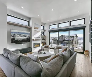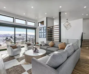 Perched on the East Village side of Deer Valley, Skyridge 1506 is a stunning modern retreat that offers year-round adventure and breathtaking views of the Jordanelle Reservoir. With easy access to world-class skiing, mountain biking, hiking, and water sports, this spacious three-level home is perfect for those seeking a luxurious getaway in the mountains. Just five minutes from the East Village slopes and a 15-minute drive to downtown Park City, this home balances seclusion with convenience, making it an ideal destination for families and large groups.Designed with contemporary elegance, this six-bedroom, 4.5-bathroom home boasts an open and inviting layout, blending high-end finishes with cozy comfort. The main level features an expansive open-concept kitchen, living, and dining area, where large windows flood the space with natural light and frame stunning mountain and reservoir views. The living room centers around a modern fireplace and flat-screen TV, while the kitchen offers bar seating for eight, sleek modern appliances, and a butler’s pantry. The dining area seats ten and opens onto a large patio with a fire pit and private hot tub, creating the perfect setting for après-ski relaxation or summer evenings under the stars. A half bath on this level adds extra convenience.The upper level is home to the primary suite, a serene retreat with a private deck, king bed, gas fireplace, and a luxurious en suite bathroom featuring dual vanities, a soaking tub, and a standing shower. A huge walk-in closet, seating area, and flat-screen TV add to the suite’s comfort. Also on this level is a dedicated office space, a full bathroom with a shower-tub combo, a king bedroom next to the office, and an additional bedroom further down the hall. A laundry room rounds out the top floor’s amenities.The lower level is designed for entertainment and relaxation, featuring a theater room with a massive projector screen and two plush sectional sofas—perfect for movie nights. A private sauna adds a touch of luxury, offering a spa-like escape after a day on the slopes. This level also includes three bedrooms: a bunk room with two full-over-full bunk beds, a queen bedroom, and a room with a king bed plus a full-over-full bunk, all thoughtfully arranged with access to two full bathrooms—one with a standing shower, and the other with a shower-tub combo.With its modern design, spacious layout, and unbeatable location, Skyridge 1506 is an exceptional home base for every season. Whether you're skiing in the winter, mountain biking in the summer, or enjoying the stunning views of the Jordanelle Reservoir year-round, this private mountain escape provides the ultimate combination of comfort, adventure, and luxury.Bed configuration:Primary Suite - KingBedroom 2 - KingBedroom 3 - KingBedroom 4- QueenBedroom 5 - King plus full/full bunk bed Bedroom 6 -Two full/full bunk bedsAir con*Please note that this home is located in a new community with ongoing construction.
