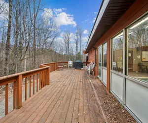 • Guests can enjoy free Fiber Optic Internet, as well as an iPod and iPhone speaker/charger/clock for added convenience. The living area and both bedrooms are equipped with televisions, with Roku streaming available in the master bedroom and downstairs. The unit also features a Jacuzzi tub for unwinding after a day of outdoor adventures, a cozy fireplace to keep you warm during colder months, and a washer and dryer for added convenience. Air conditioning is available throughout the home, ensuring comfort year-round. Step outside onto the deck, where a gas grill awaits for outdoor cooking while taking in the panoramic mountain views.